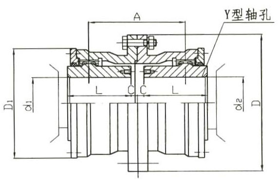 ?、蛐停芊舛藶檎w型,齒間距小,相對允許徑向位移小,結(jié)構(gòu)緊湊,轉(zhuǎn)動慣量小,可與Y、J1型軸伸聯(lián)接。
