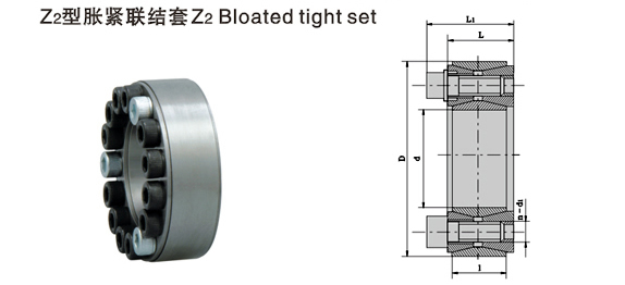 特性:Z2型脹緊套由一個(gè)開(kāi)口的雙錐內(nèi)環(huán),一個(gè)開(kāi)口的雙錐外環(huán)和兩個(gè)雙錐壓緊環(huán)組成。用內(nèi)六角螺栓擰緊,擰緊時(shí)彈性環(huán)沒(méi)有相對(duì)于軸轂的軸向移動(dòng),與Z1型比較,同樣壓緊力能產(chǎn)生更大的徑向壓力,傳遞更大的載荷。為便于拆卸,在一個(gè)壓緊環(huán)上有拆卸用螺孔,沿圓周共有2~4處。鎖緊聯(lián)結(jié)盤(pán)廣泛應(yīng)用于包裝、印刷、紡織、機(jī)床等機(jī)械上。